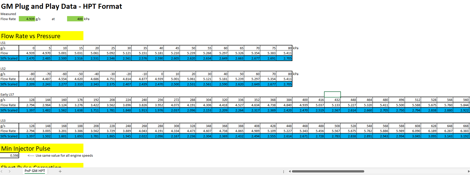 Detailed injector characterization including flow rate, offset/deadtime, and short-pulse data